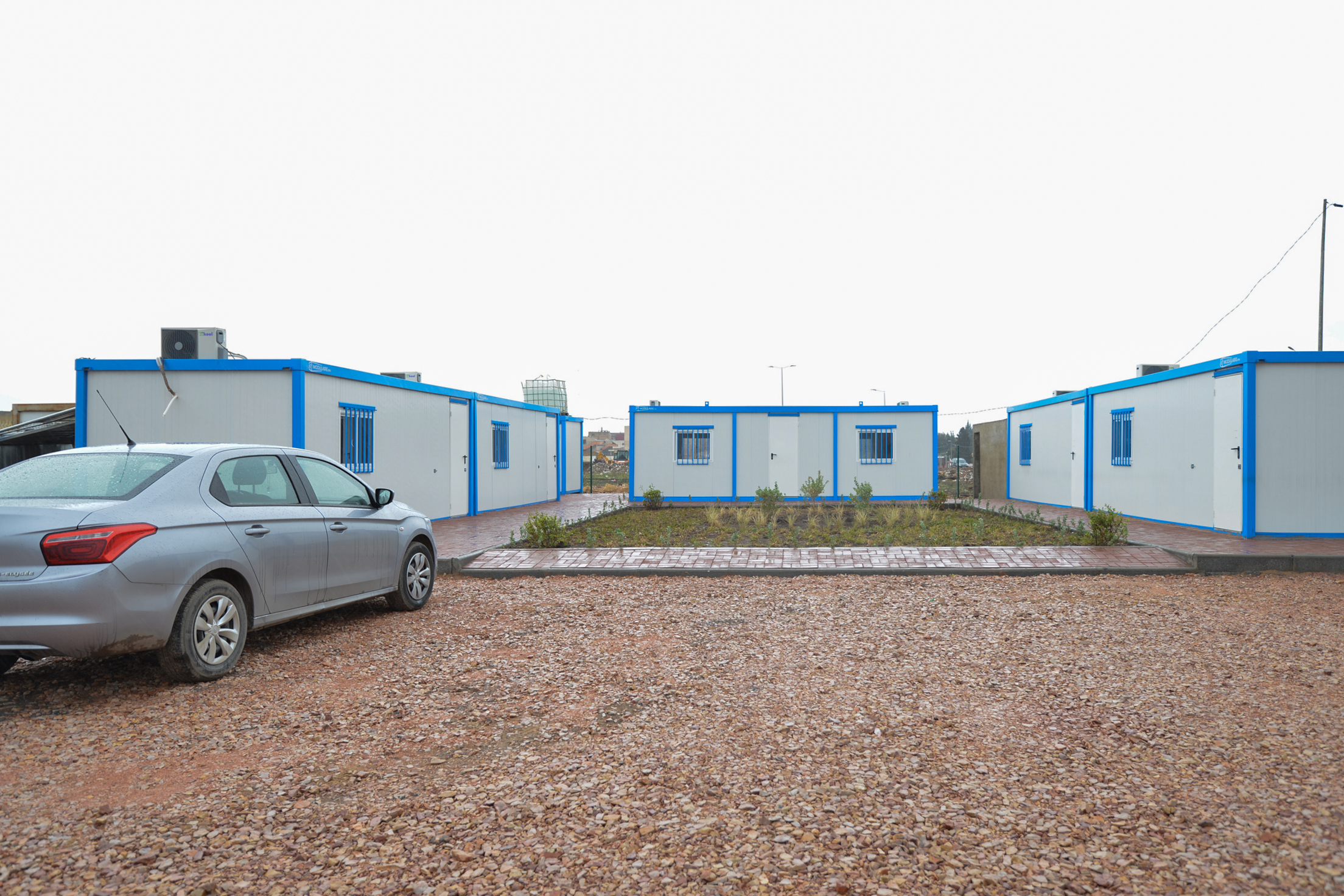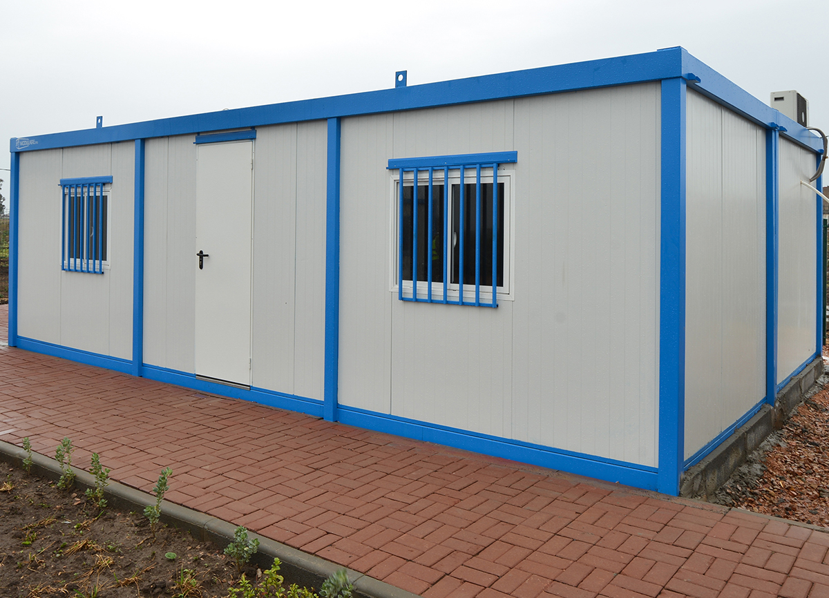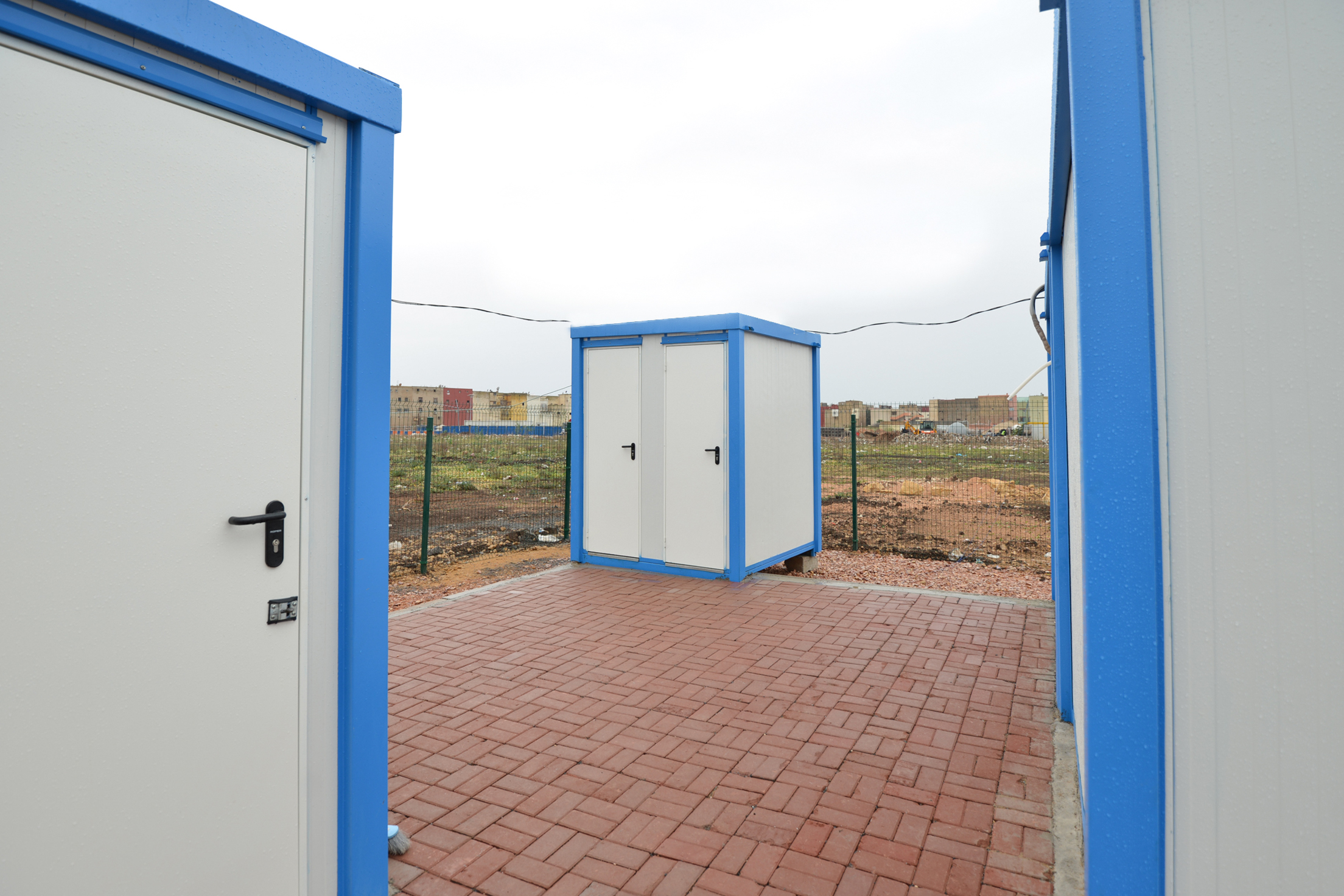 Bureaux de chantier, avec coin sanitaire modulaire et palissade. Lieu: Medionna, Nouacer, Casablanca-Settat.